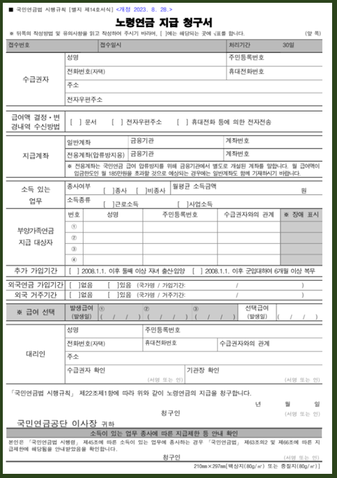 - 노령연금 청구서